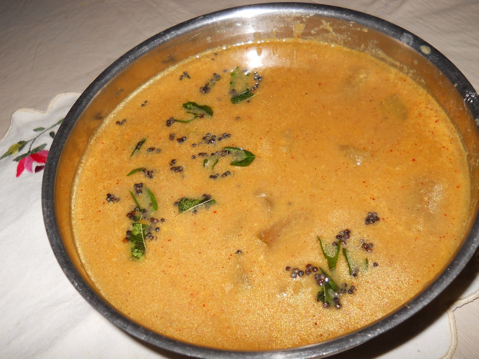 There are two types – ‘thenga arachuvitta pulingari’ and ‘podi podicha pulingari’. Neither has any dal. The former has a lot of coconut. If you want to have something light on your tummy, go for the latter which has no coconut. I remember my mother tell me in her seventies – “Yesterday we had sambar with dal and coconut, let it be simple today – may be ‘podi podicha pulingari’!